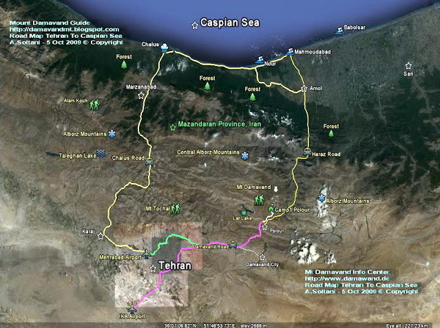 Road Map Tehran To Caspian Sea Via Haraz and Chalus Roads